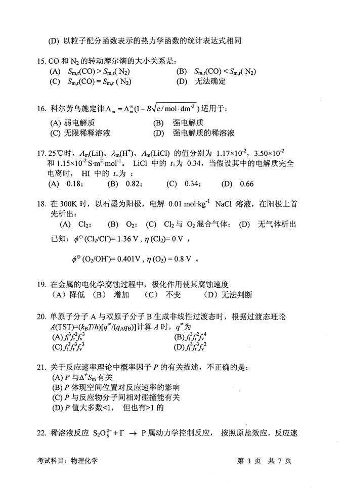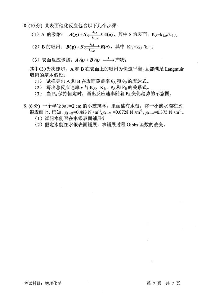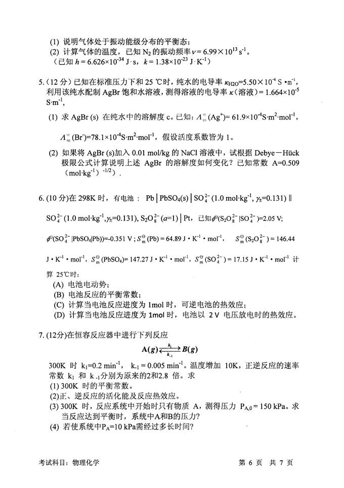 2. 全国名校物理化学考研真题汇总(含部分答案)