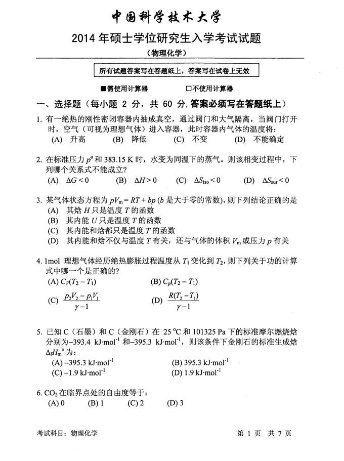 回复关键词【中国科学技术大学621】或【中国科学技术大学物理化学】