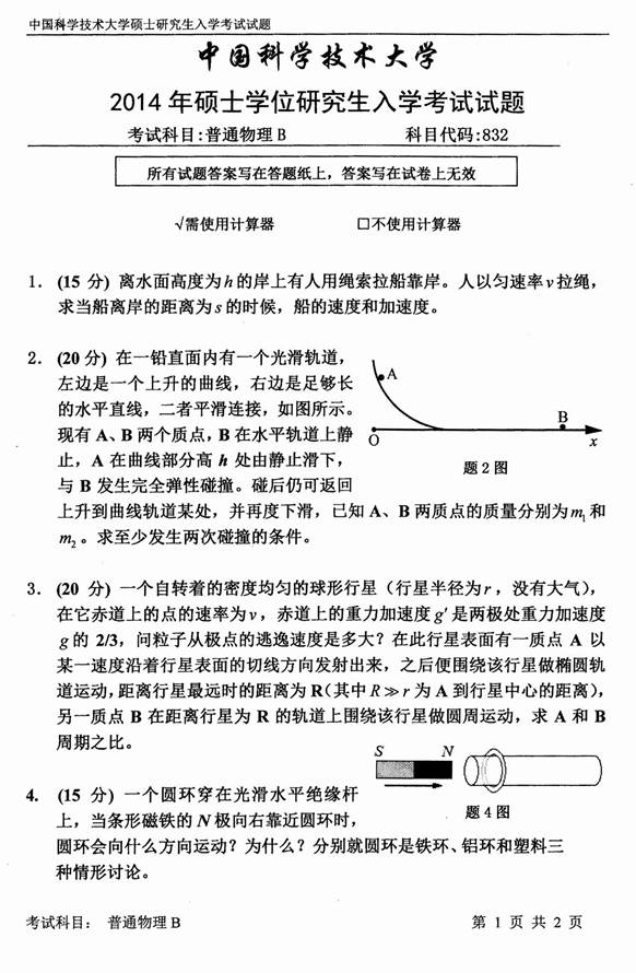 1. 中国科学技术大学《832普通物理B》历年考研真题汇总(含部分答案)
