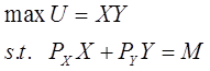 构造拉格朗日函数:L(X,Y,λ)=XY-λ(PXX+PYY-M)。