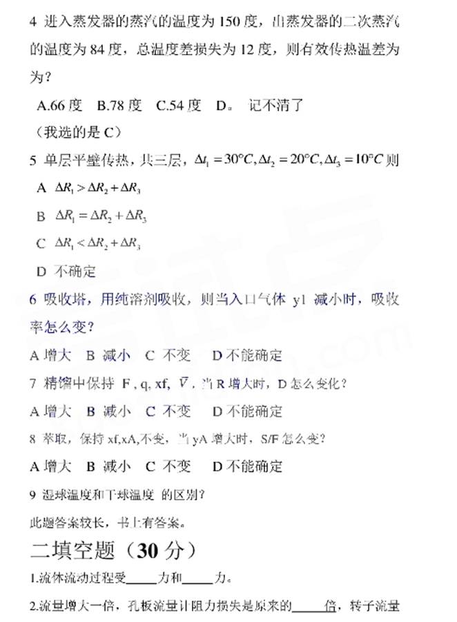 2. 全国名校化工原理考研真题汇总(含部分答案)