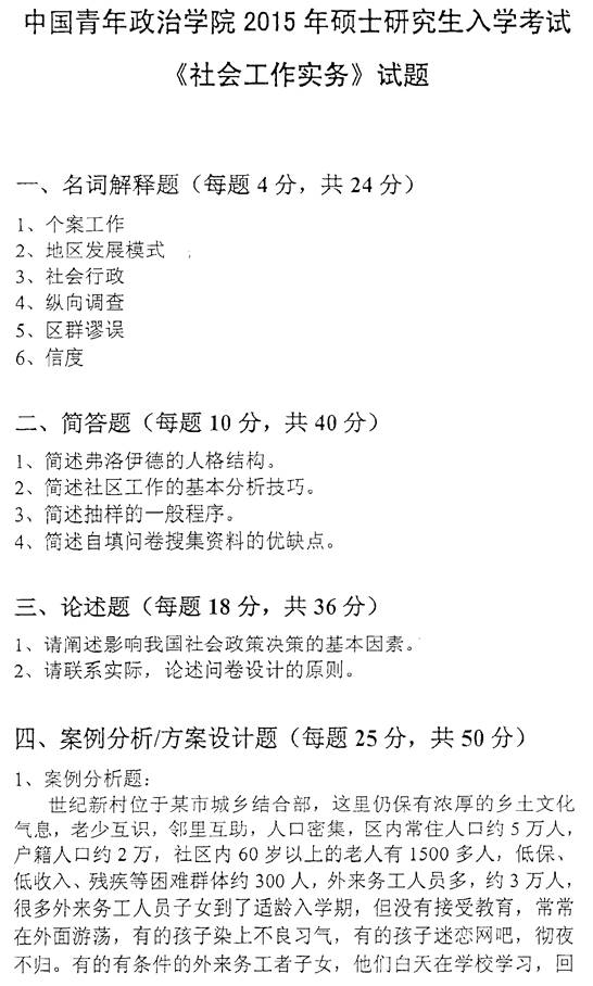 2015年中国青年政治学院《437社会工作实务》考研真题