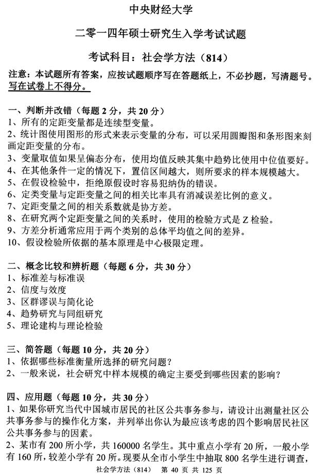 1. 中央财经大学社会与心理学院《814社会学方法》历年考研真题