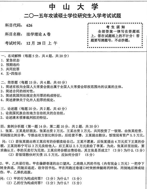 1. 中山大学法学院《法学理论专题》历年考研真题汇总