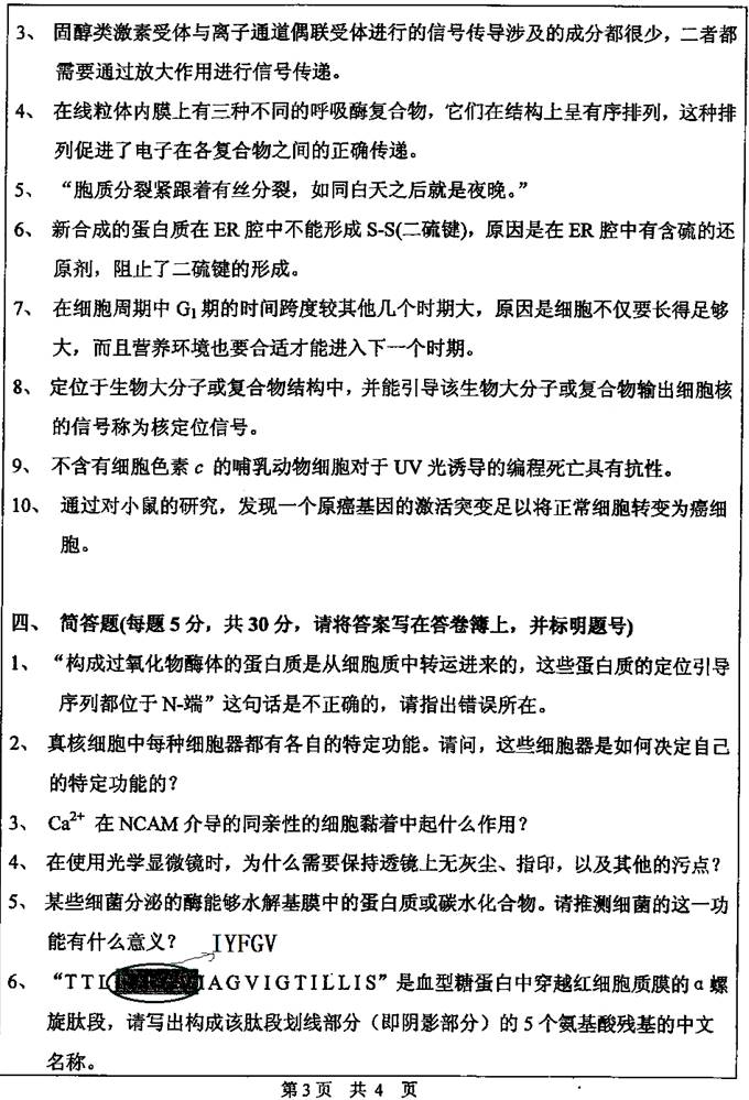 2. 全国名校细胞生物学考研真题汇总(含部分答案)