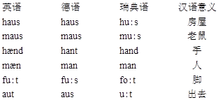 3.根据下面用国际音标记录的材料,说明英语、德语、瑞典语之间有哪些音存在着有规则的对应关系。