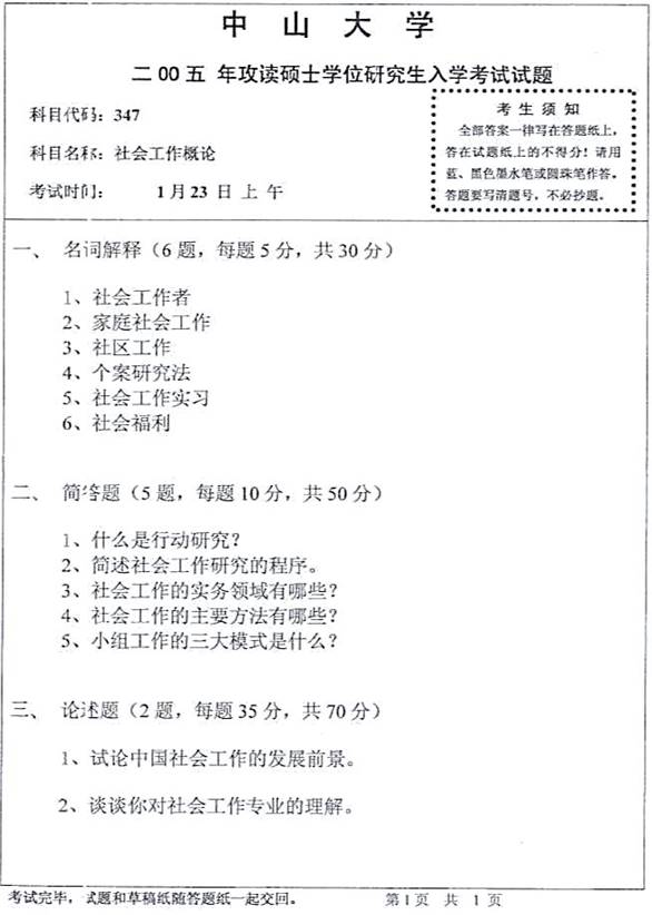 1. 中山大学社会学与人类学学院《331社会工作原理》历年考研真题汇总(含部分答案)