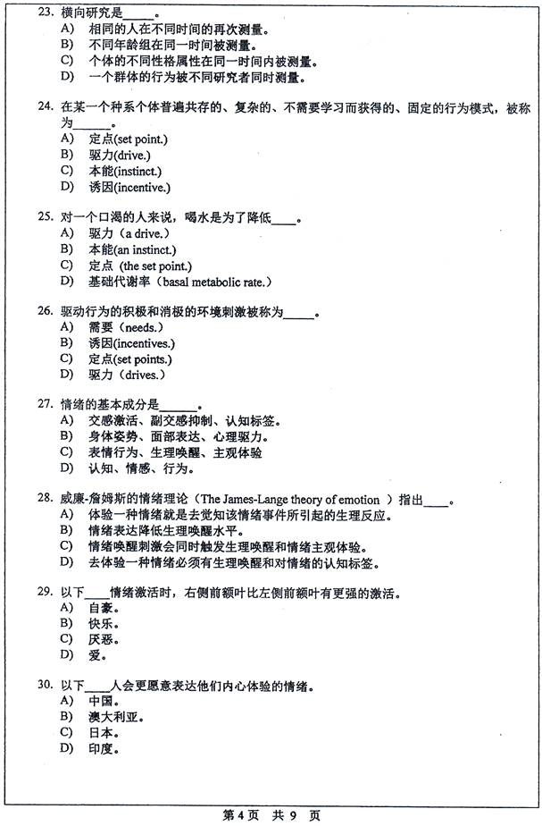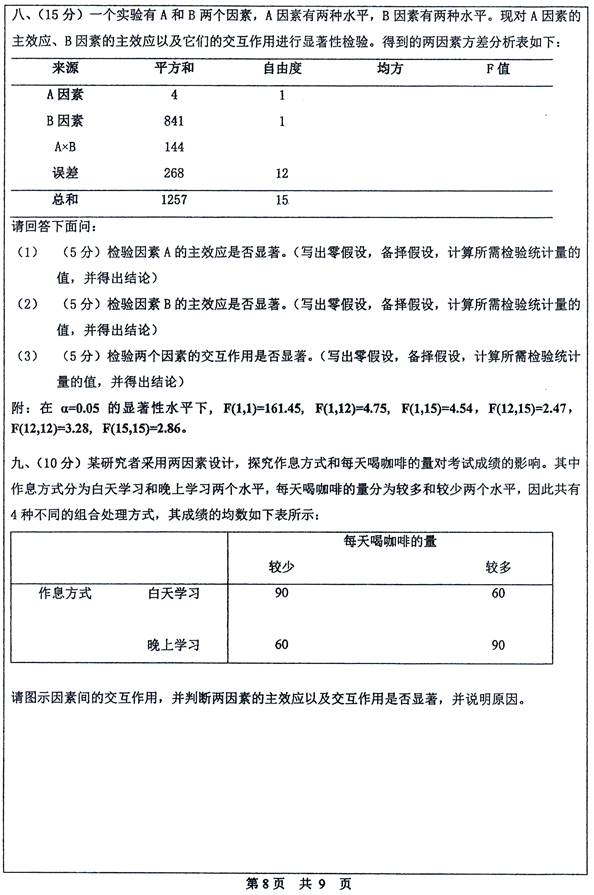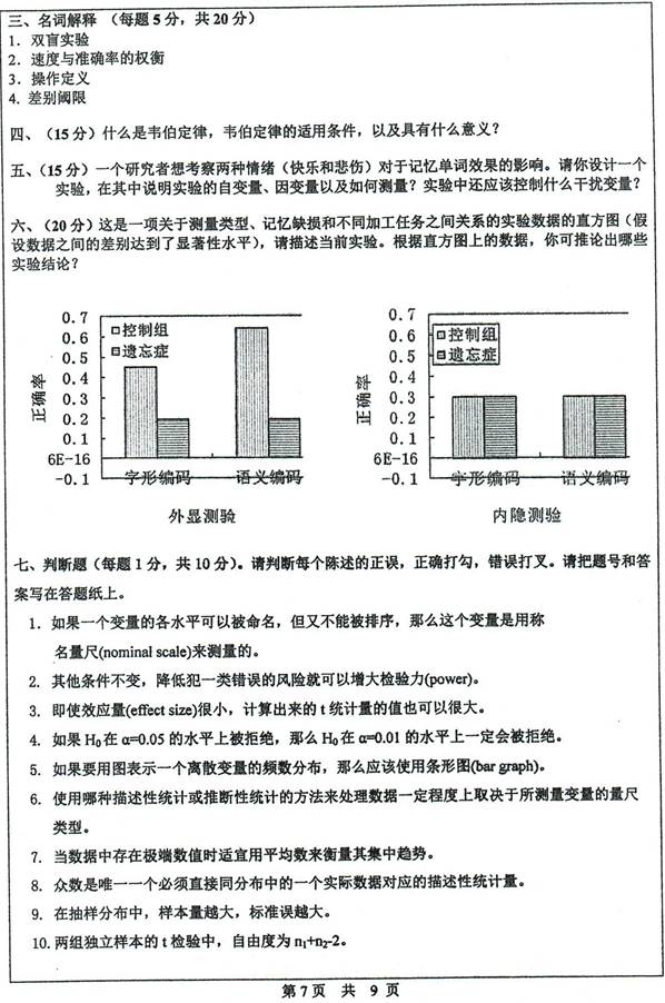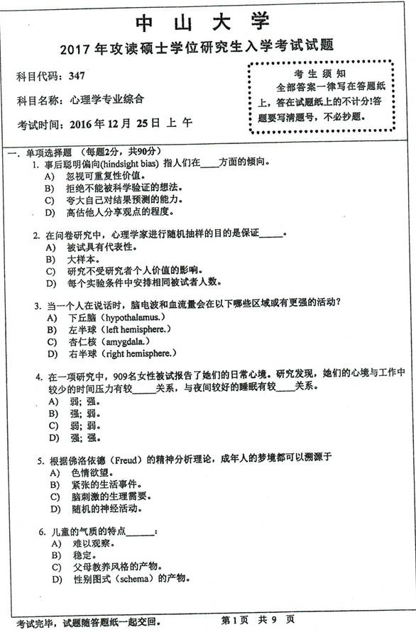 1. 中山大学心理学系《347心理学专业综合》历年考研真题汇总
