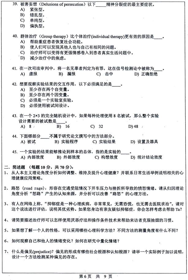 2. 应用心理硕士《347心理学专业综合》名校考研真题(2017年前)