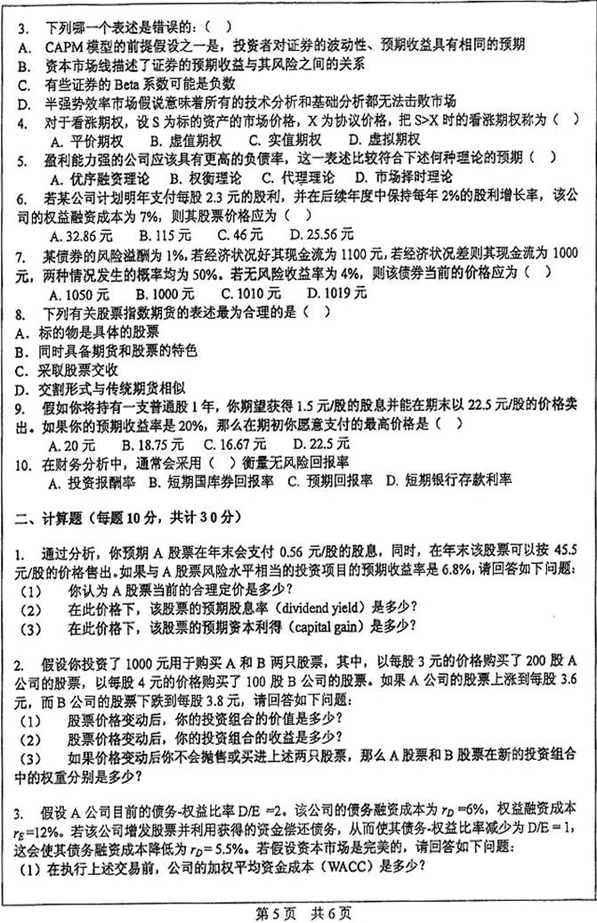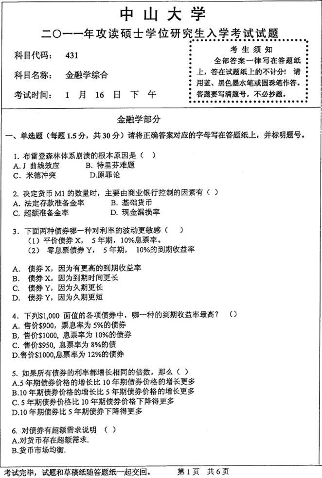 1. 中山大学《431金融学综合》[专业硕士]历年考研真题汇总(含部分答案)