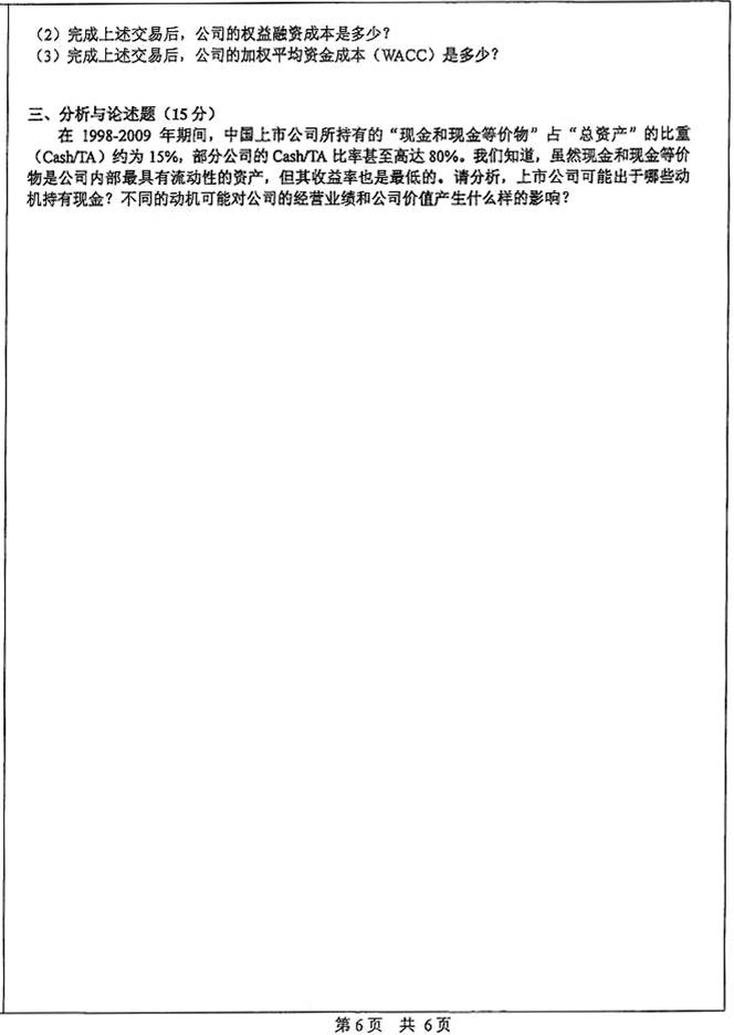 2023年中山大学《431金融学综合》考研真题(回忆版)