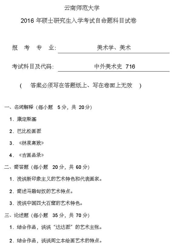 1. 云南师范大学美术学院《中外美术史》历年考研真题汇总