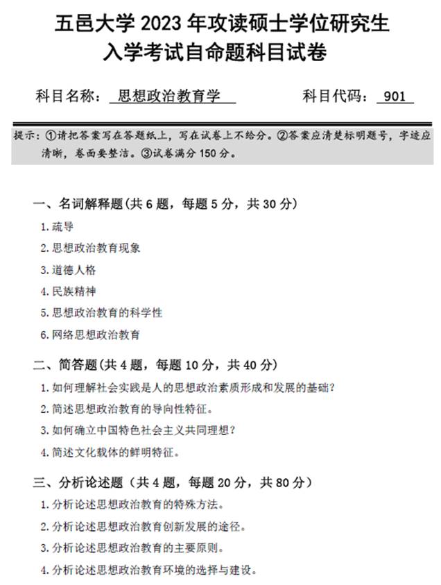 1. 五邑大学马克思主义学院《901思想政治教育学》历年考研真题汇总