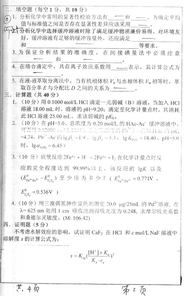 3. 全国名校分析化学考研真题汇总(含部分答案)