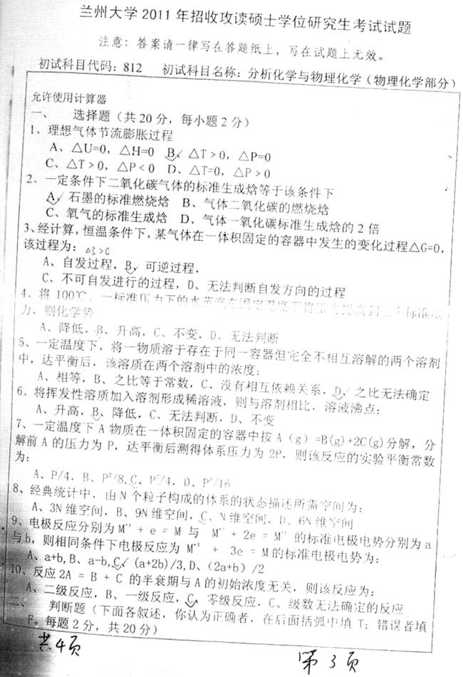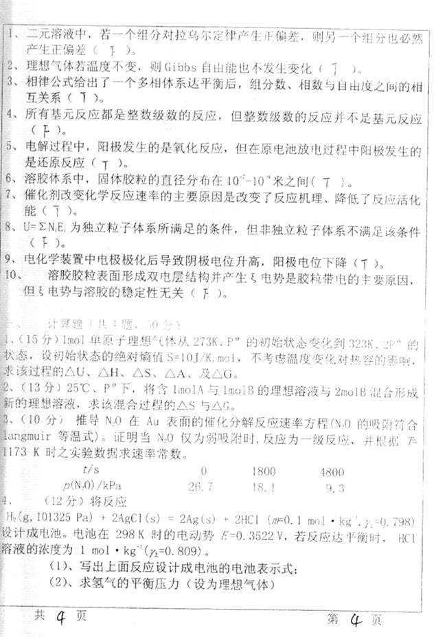 2. 全国名校物理化学考研真题汇总(含部分答案)