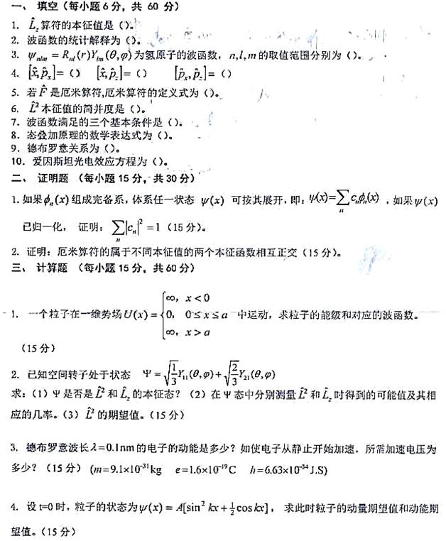 1. 内蒙古农业大学理学院《819量子力学》历年考研真题汇总
