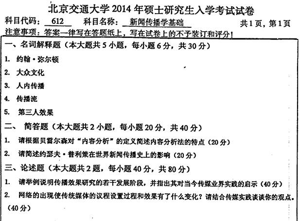 2014年北京交通大学《612新闻传播学基础》考研真题