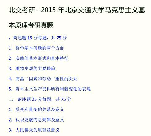 1. 北京交通大学人文社会科学学院《615马克思主义基本原理》历年考研真题汇总(含部分答案)
