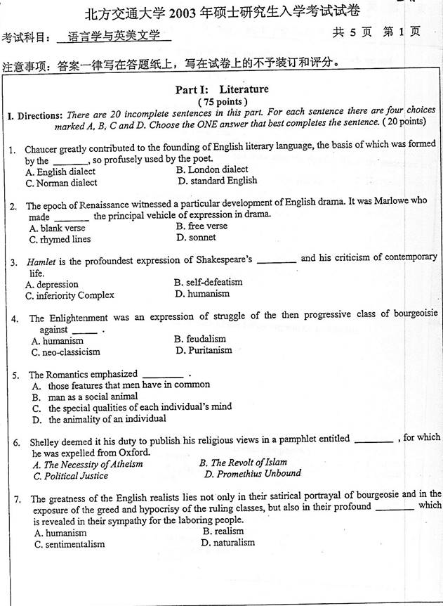 2007年北京交通大学《610语言学与英美文学》考研真题