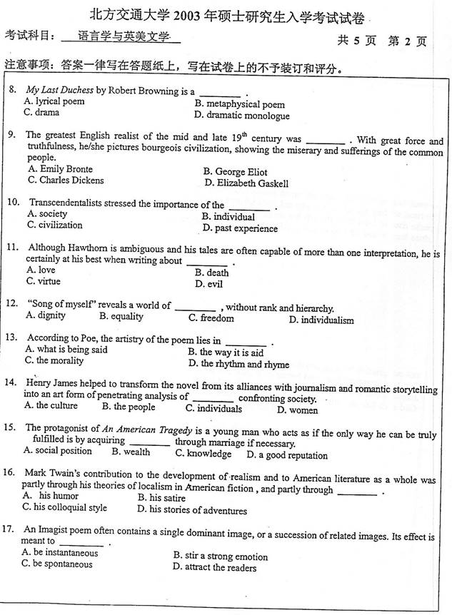 2017年北京交通大学《621语言学及英美文学》考研真题