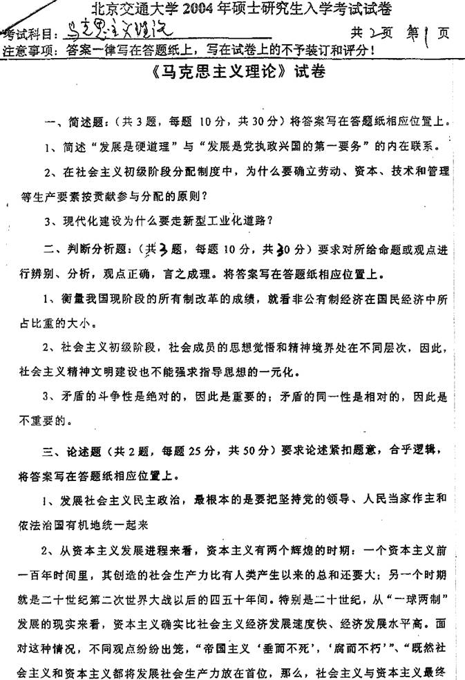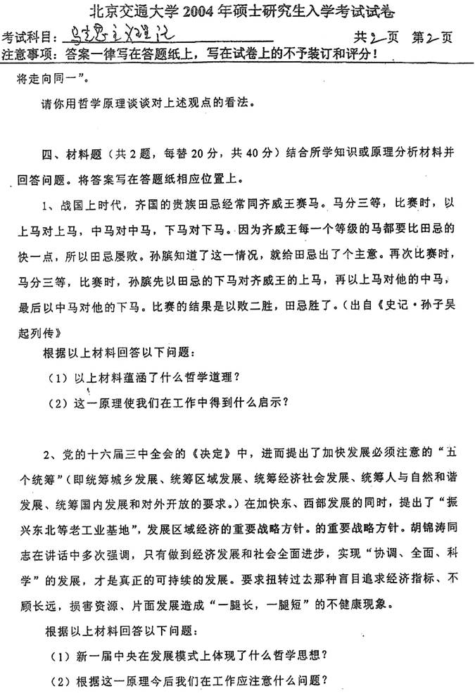 2004年北京交通大学马克思主义理论考研真题