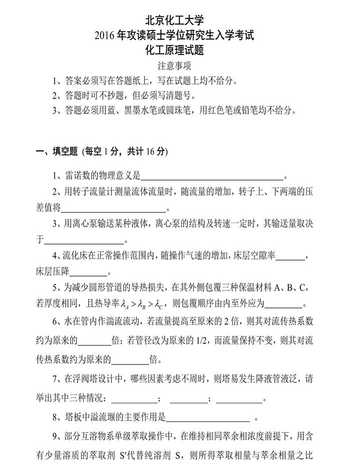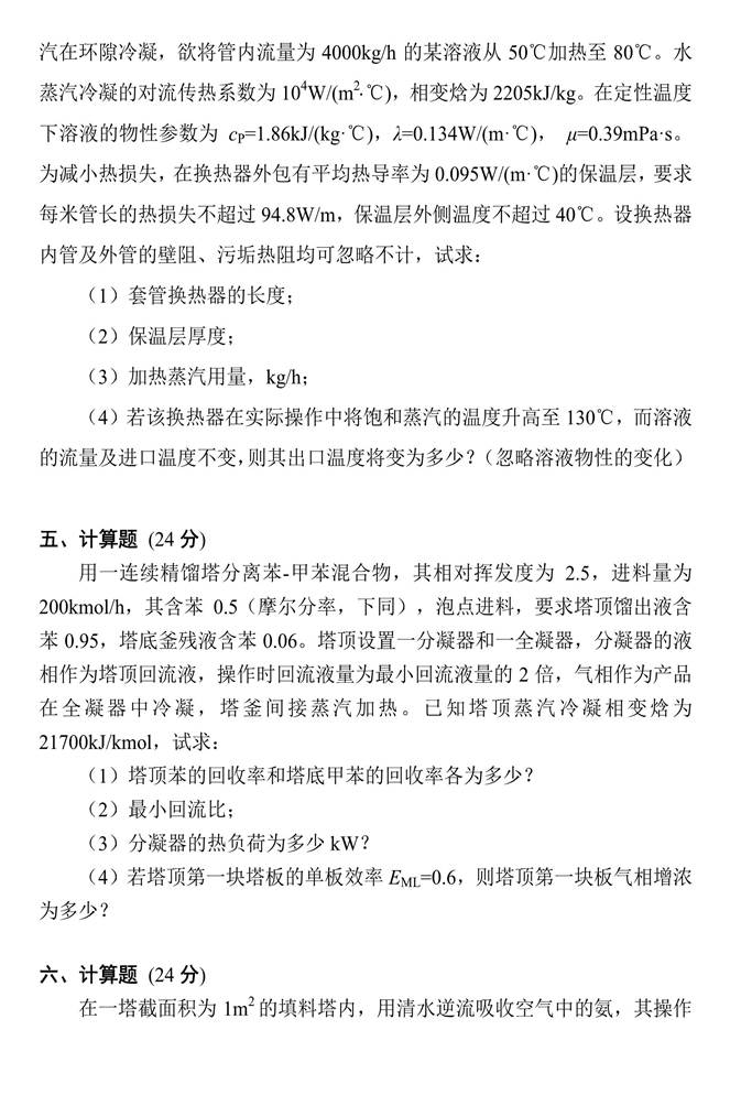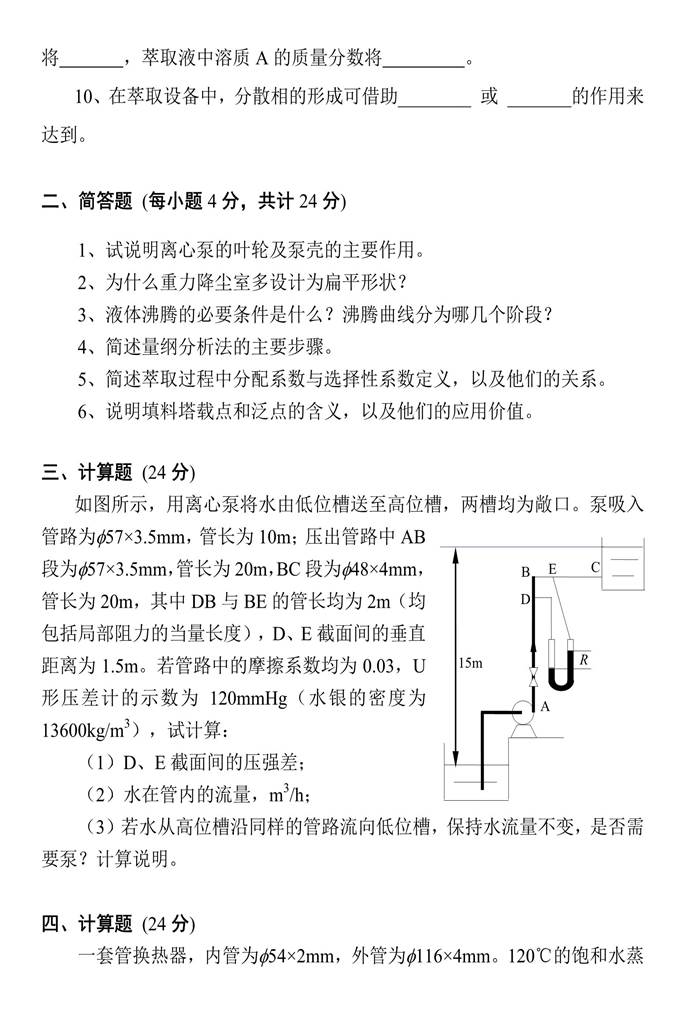 2. 全国名校化工原理考研真题汇总(含部分答案)