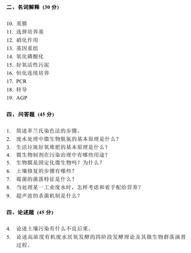 第二部分 兄弟院校环境微生物学考研真题