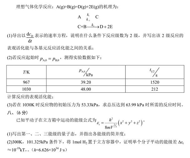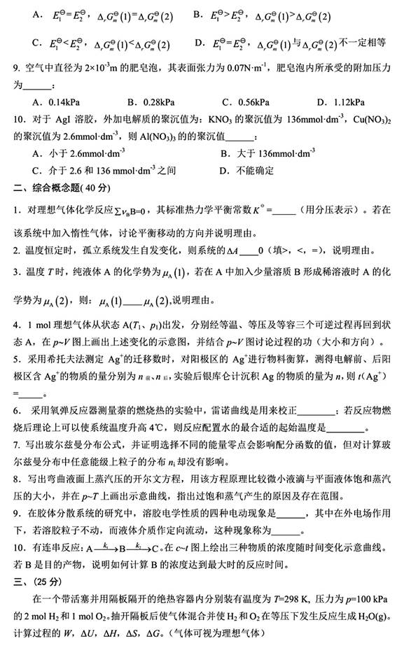 2. 全国名校物理化学考研真题汇总(含部分答案)