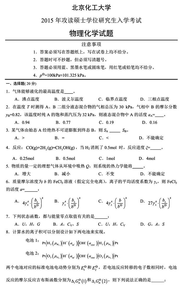 1. 北京化工大学《860物理化学》历年考研真题汇总(含部分答案)