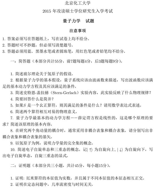 1. 北京化工大学理学院《862量子力学》历年考研真题汇总