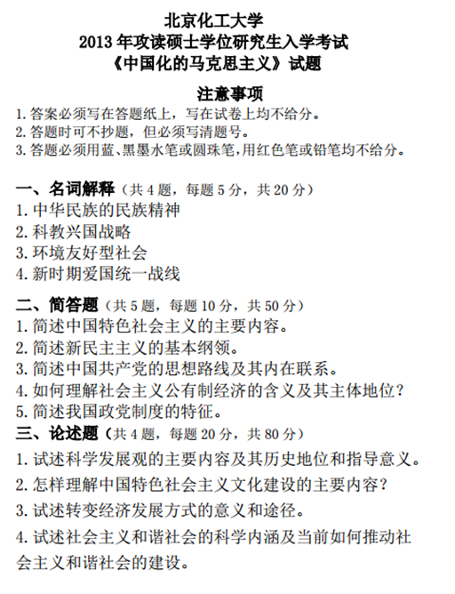 1. 北京化工大学马克思主义学院《885马克思主义中国化理论与实践》历年考研真题汇总