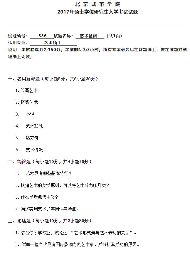 1. 北京城市学院《336艺术基础》历年考研真题汇总