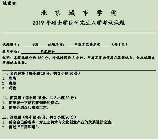 1. 北京城市学院艺术设计《808中国工艺美术史》[专业硕士]历年考研真题汇总