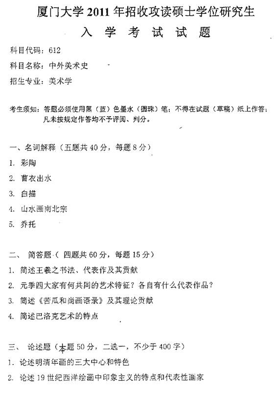 第六部分 西南大学美术学院612中外美术史论考研真题