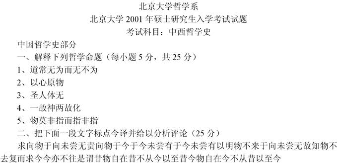 北京大学哲学系《中西哲学史》历年考研真题汇总