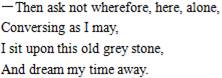 friend that why he sits upon that grey stone and dreams away his time. His reason