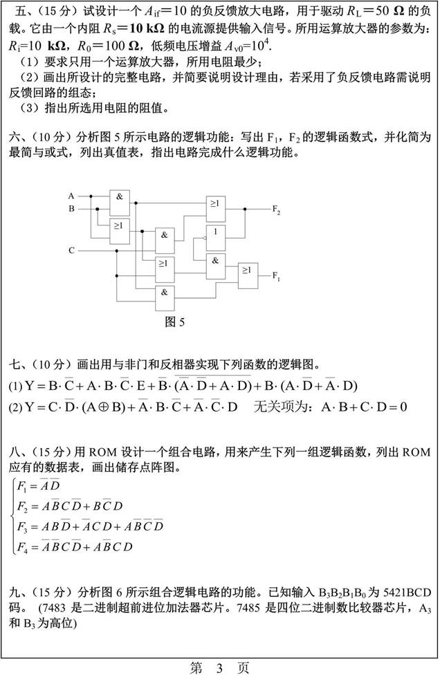 4.北京科技大学模拟电子技术与数字电子技术基础考研真题