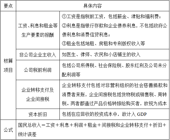 公式:NI=NDP-间接税-企业转移支付+政府补助金=NNP-统计误差。