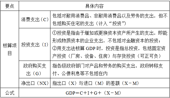 表1-2 支出法的核算项目及公式