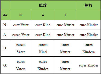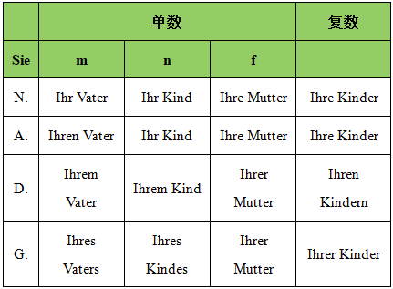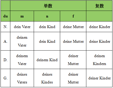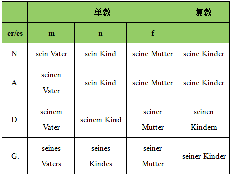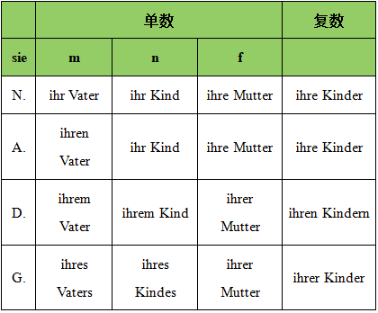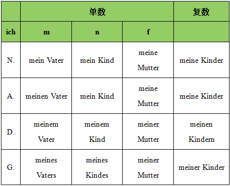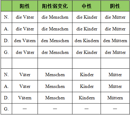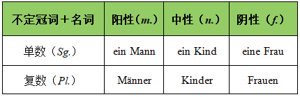3个性:阳性(Maskulinum, m.)、中性(Neutrum, n.)、阴性(Femininum, f.)