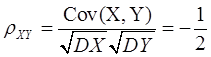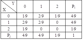 所以,EX=0×4/9+1×4/9+2×1/9=2/3。同理EY=2/3,EX2=8/9,EY2=8/9,EXY=2/9。Cov(X,Y)=EXY-EXEY=-2/9。DX=EX2-(EX)2=4/9,DY=EY2-(EY)2=4/9。所以