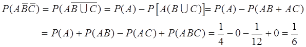 1设A,B,C为三个随机事件,且P(A)=P(B)=P(C)=1/4,P(AB)=0,P(AC)=P(BC)=1/12,则A,B,C中恰有一个事件发生的概率为( )。[数一2020研]