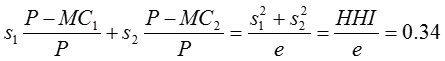 PA(1-1/edA)=PB(1-1/edB)