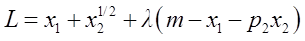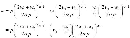π=pQ-w1x1-w2x2=px1α-w1x1-w2x1/2
