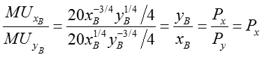 消费者B的效用最大化条件为:MUxB/MUyB=px/py,即yB=1/p③