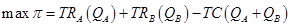 ∂π/∂QA=MRA(QA)-MC(QA+QB)=0