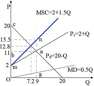 与第(2)问结果相比,此时的市场均衡并非是有效率的。