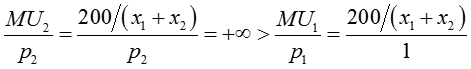 对于消费者B来讲一定有X1B=X2B,代入预算线可得: