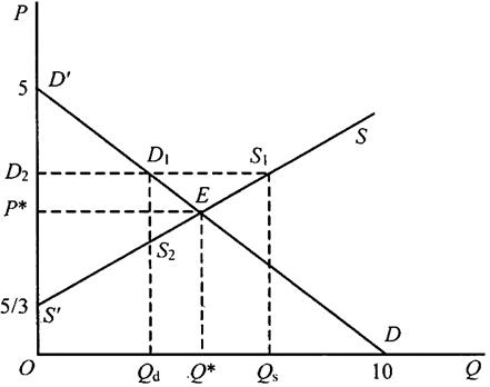 如图2所示,征收关税前,国内咖啡的价格P=5+2=7(元),国内咖啡生产者的总产量Q=P=7。征收关税后,国内咖啡的价格P=5+2+2=9(元),国内咖啡生产者的总产量Q=P=9。