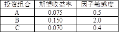 2(5分)假设有3个充分分散化的股票投资组合,市场中只有一个公共的风险因子,下表中给出了这些投资组合的期望收益率和因子敏感度,求市场的无风险利率与风险溢价。